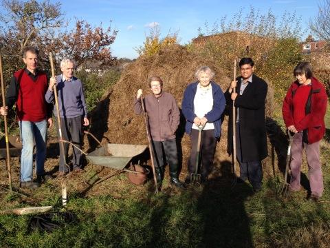 It was good teamwork too, Anne, Alison and the regulars raked the hay, Jim and I collected it in wheelbarrows and dumped it on the compost heap. Having never seen, let alone used a real pitchfork before, I soon got the hang of it. It was a bit like using a fork to eat noodles. Just on a bigger scale.